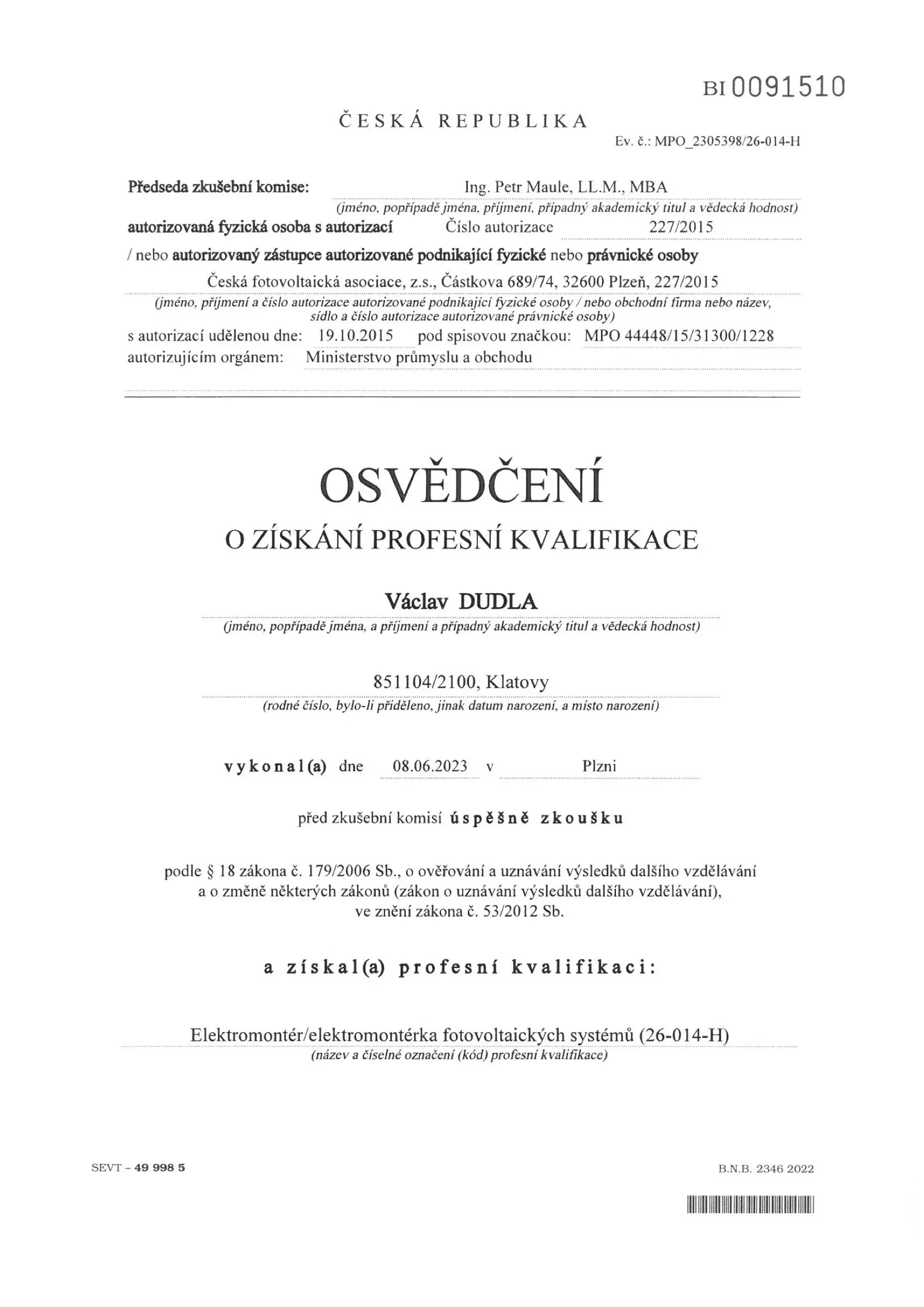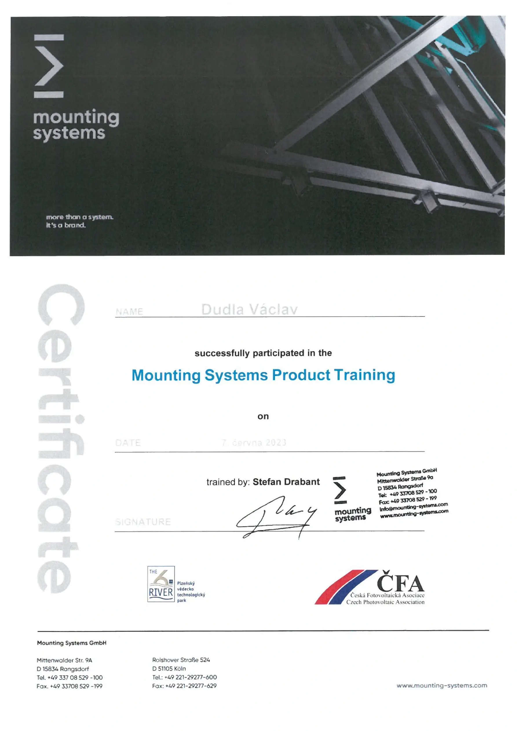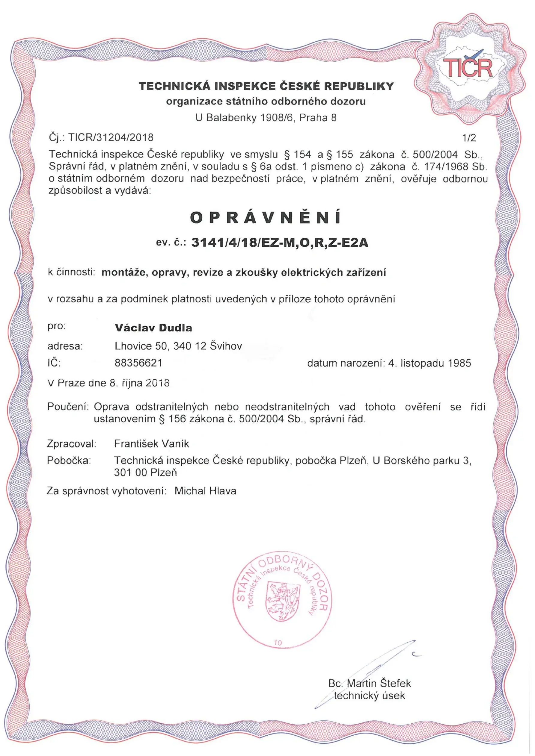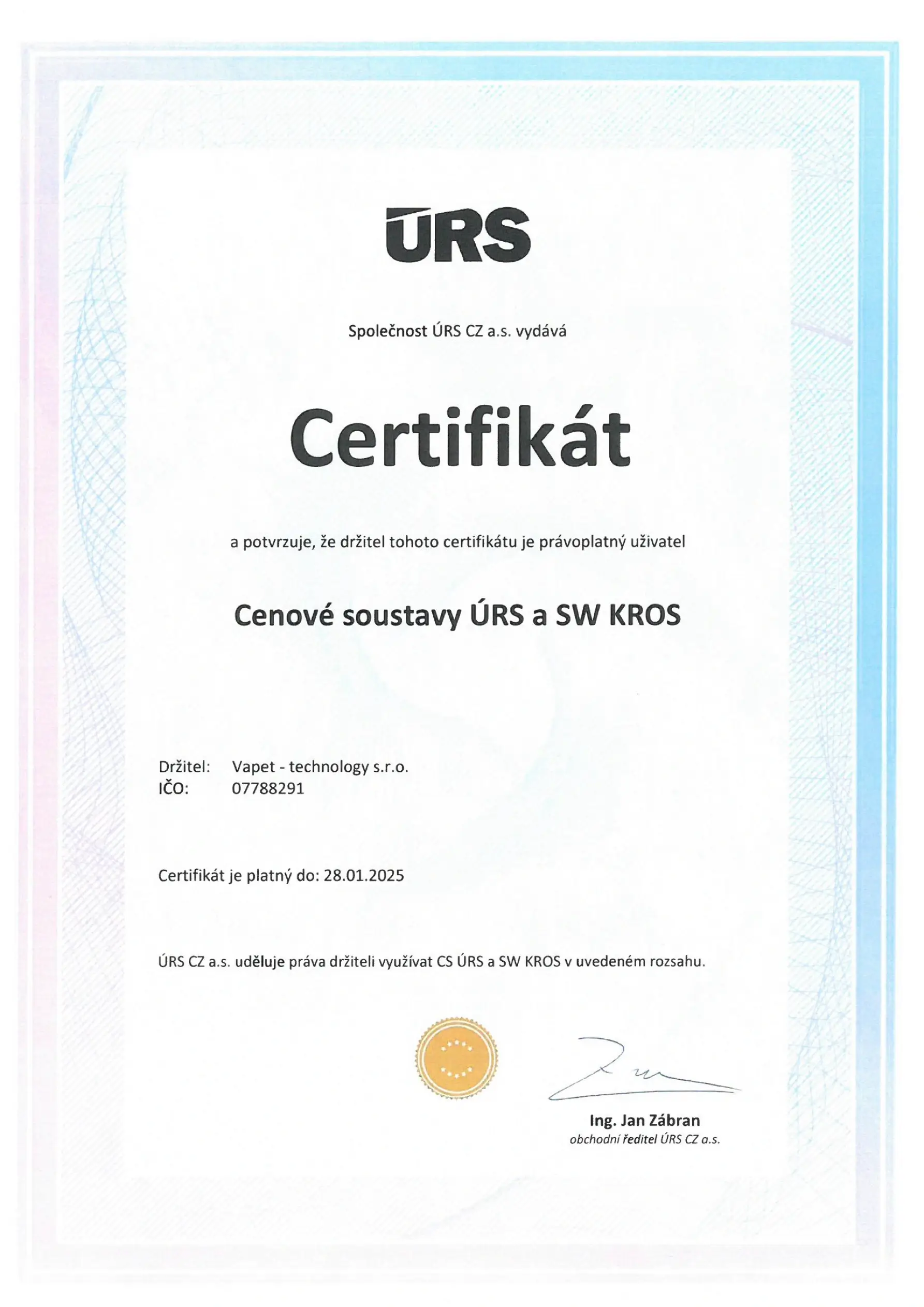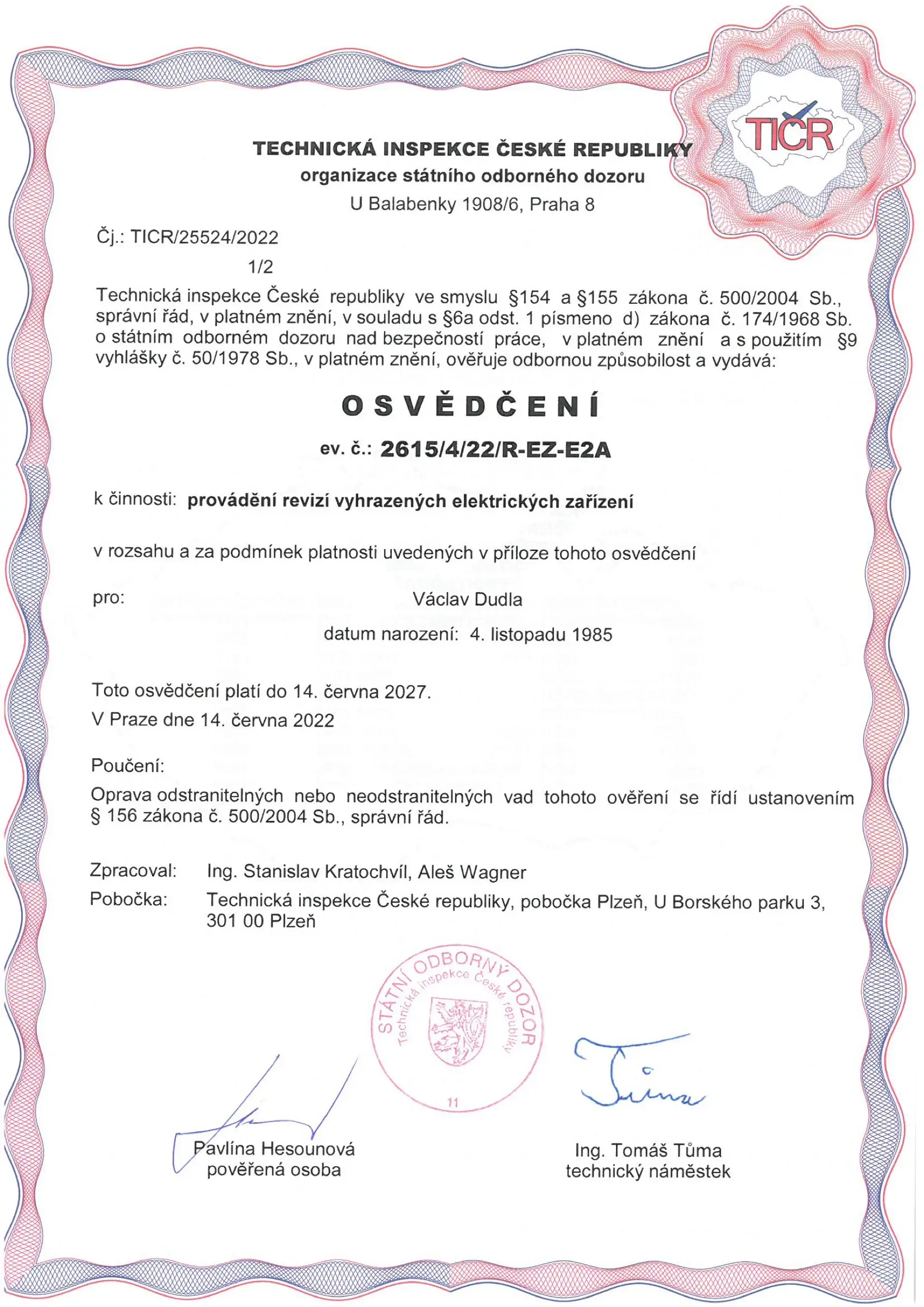 Kvalita našich služeb je podložena oficiálními certifikáty a osvědčeními: