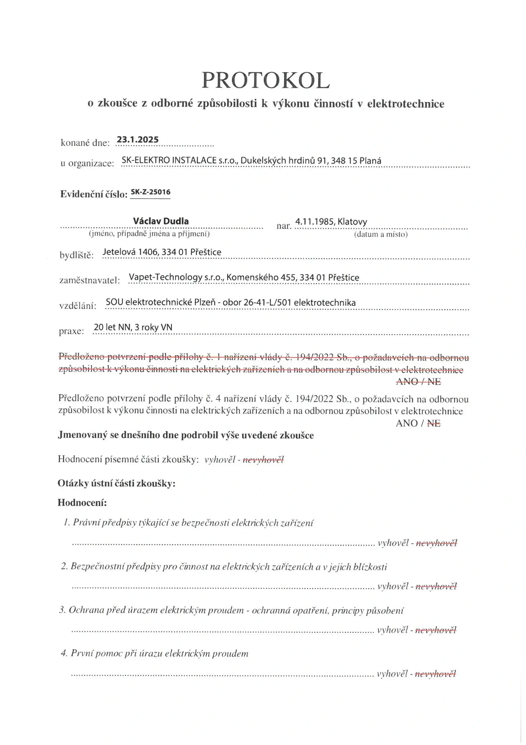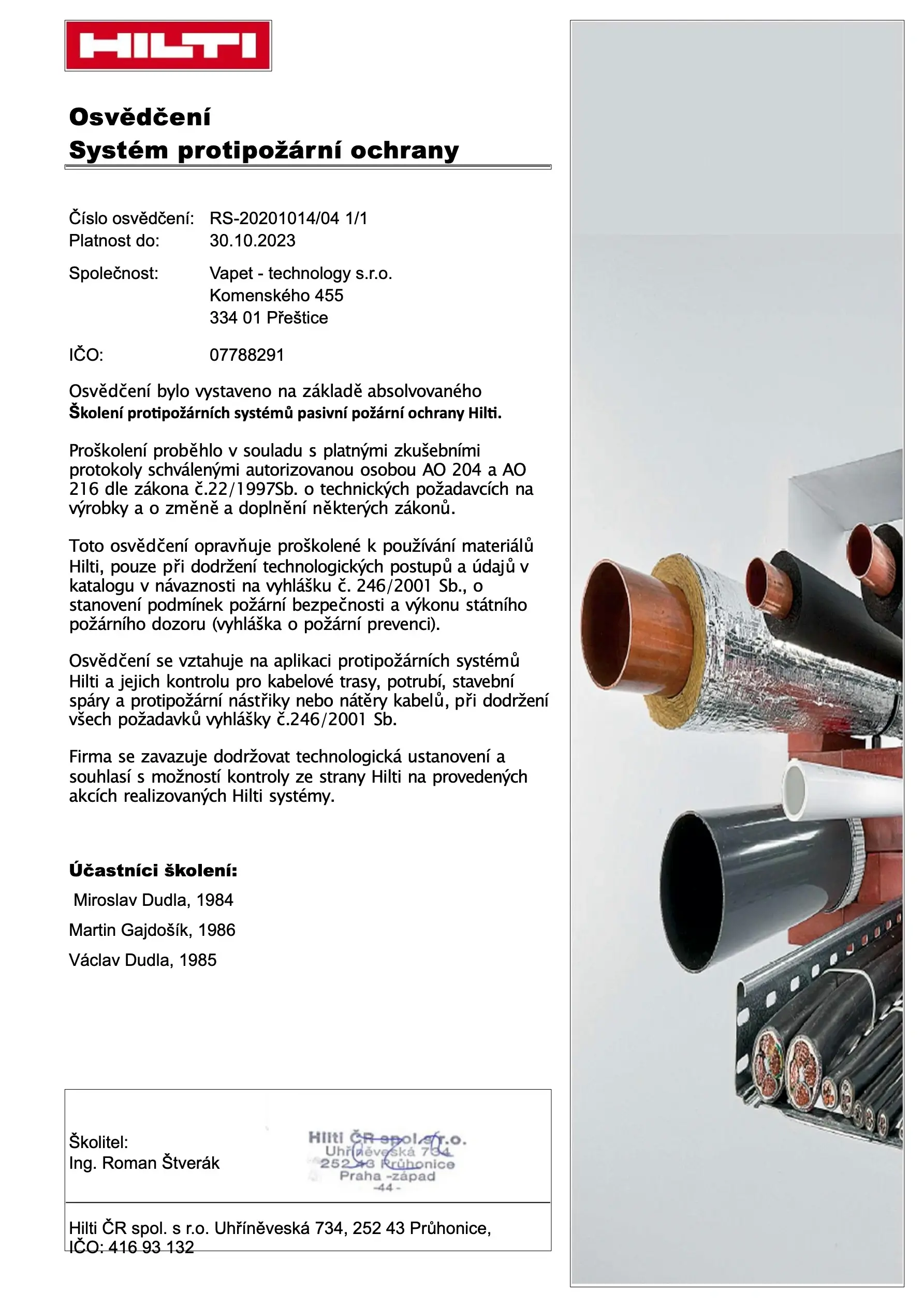 „Od roku 2005 působím v oboru technických instalací, zkušenosti jsem získal nejen v Česku, ale i v Německu. Mým cílem je, aby VAPET technology bylo synonymem pro spolehlivé technologie a profesionální přístup. Každý projekt řídím osobně – od nabídky až po podpis smlouvy o dílo. Díky tomu máte jistotu, že se na nás můžete stoprocentně spolehnout.“