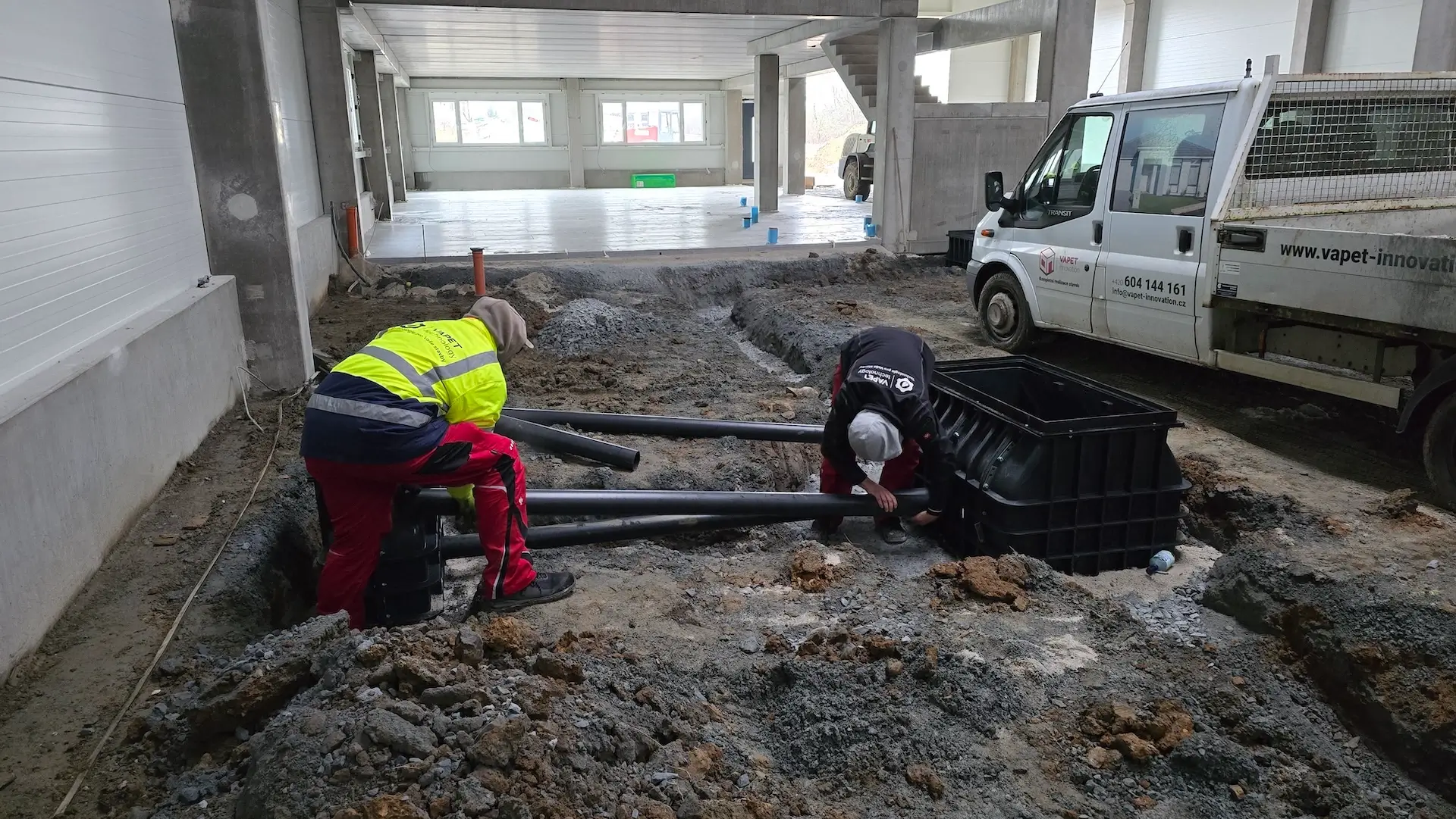 Instalace zemních kanálů pro instalační vedení – Dobřany